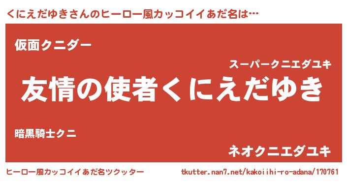| ヘコむあだ名 | 『くにえだゆき(苦笑)』『くにもー』 |