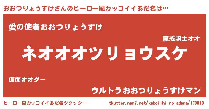 | 意味不明あだ名 | 『永久保存おおつりょうすけ』 |