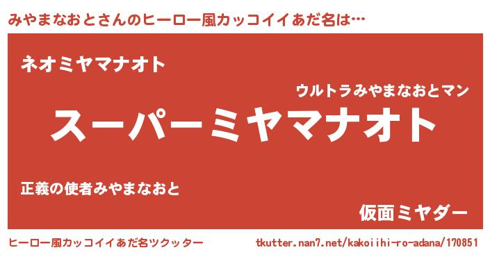 | 恥ずかしいあだ名 | 『プリティーみやまなおと』『みやちん』 |