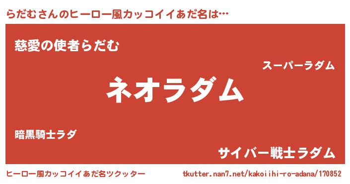 | 男性向けラノベタイトル風あだ名 | 『うちのらだむが世界を掌握している!』 |