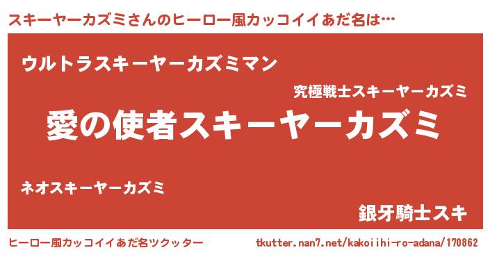 | 女子向けラノベタイトル風あだ名 | 『シンデレラスキーヤーカズミ家の靴箱館』 |