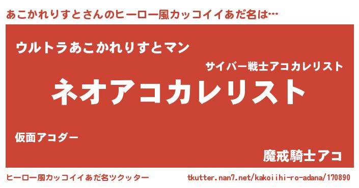 | 胡散臭い通販商品みたいなあだ名 | 『来世でも幸せになれる水素水…その名も「あこかれりすと」』 |