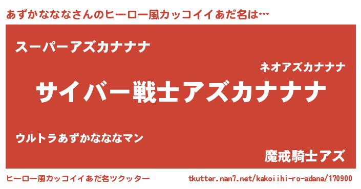 | 男性向けラノベタイトル風あだ名 | 『Re:あずかなななから始める異世界生活』 |