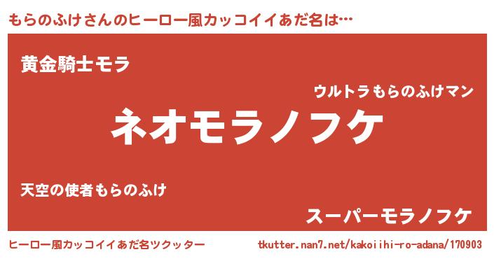 | ヘコむあだ名 | 『もらのふけ(震え声)』『もらお』 |