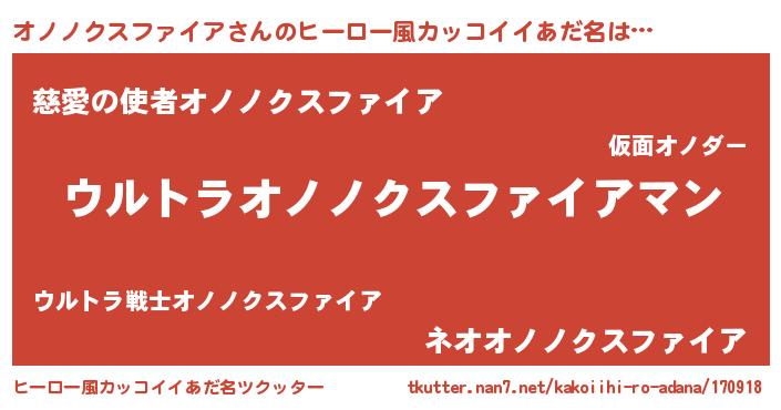 | 男性向けラノベタイトル風あだ名 | 『オノノクスファイアスレイヤー』 |