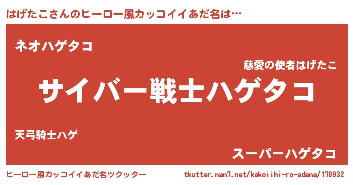 | 男性向けラノベタイトル風あだ名 | 『Re:はげたこから始める異世界生活』 |