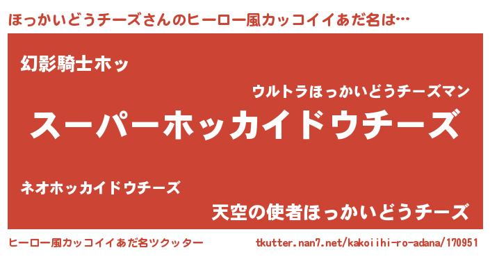 | 男性向けラノベタイトル風あだ名 | 『ホッカイドウチーズアートオンライン』 |