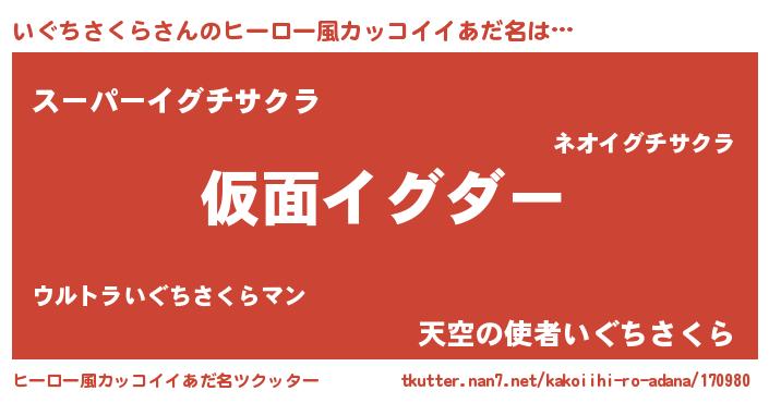 | 男性向けラノベタイトル風あだ名 | 『この素晴らしい世界にいぐちさくらを!』 |