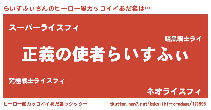 らいすふぃさんのヒーロー風カッコイイあだ名をツクッター!
