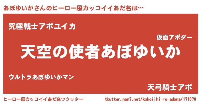 | 欧米人風あだ名 | 『あぼゆいか・ステッグマイヤー』 |