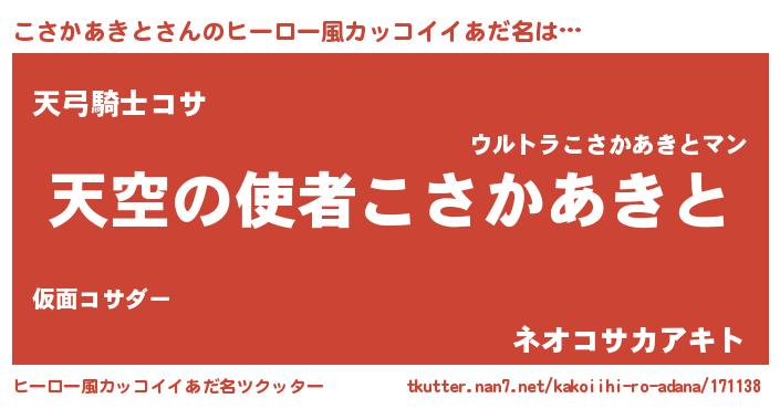 | 男性向けラノベタイトル風あだ名 | 『ノーゲーム・ノーコサカアキト』 |