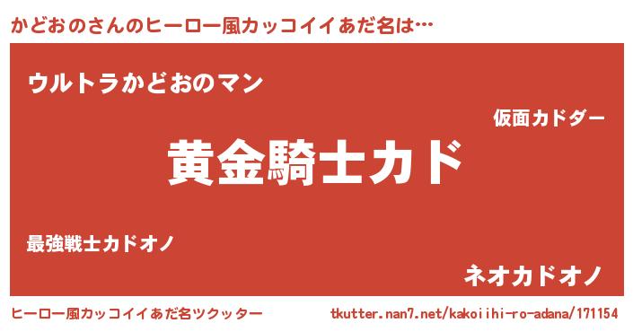 | 意味不明あだ名 | 『とにかく怪しいかどおの』 |