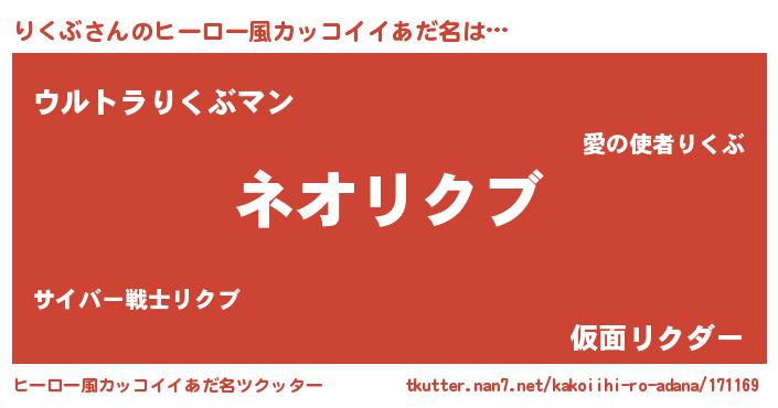| ファンタジー風あだ名 | 『リクディッシュ』『エターナルリクブー』 |