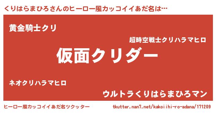 | 男性向けラノベタイトル風あだ名 | 『魔弾の王とくりはらまひろ』 |