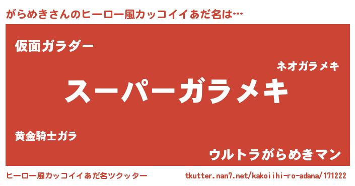 | 男性向けラノベタイトル風あだ名 | 『ガラメキアートオンライン』 |