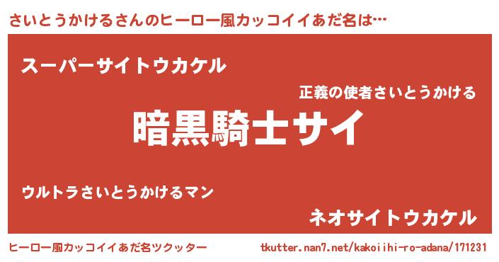 | 意味不明あだ名 | 『とにかく怪しいさいとうかける』 |