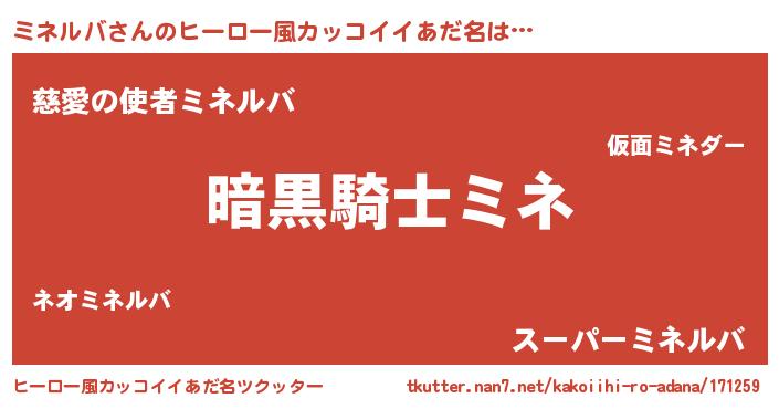 | 男性向けラノベタイトル風あだ名 | 『ミネルバスレイヤー』『ミネルバの憂鬱』 |