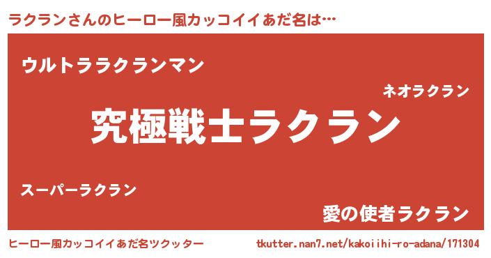 | 男性向けラノベタイトル風あだ名 | 『Re:ラクランから始める異世界生活』 |