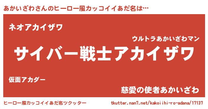 | 女子向けラノベタイトル風あだ名 | 『闇のあかいざわ』 |