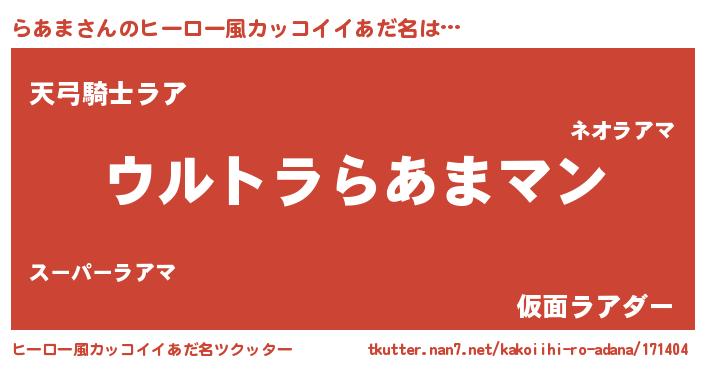 | 男性向けラノベタイトル風あだ名 | 『緋弾のラアマ』『ラアマスレイヤー』 |