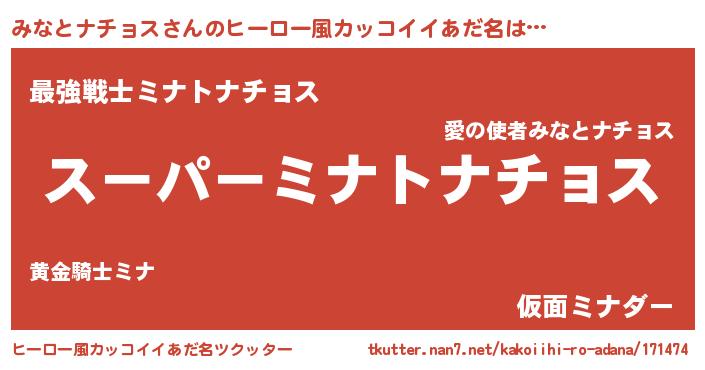 | 男性向けラノベタイトル風あだ名 | 『みなとナチョスの憂鬱』 |