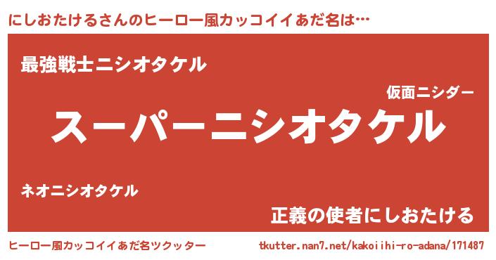 | ヘコむあだ名 | 『にしにー』『にしおたける(小並感)』 |