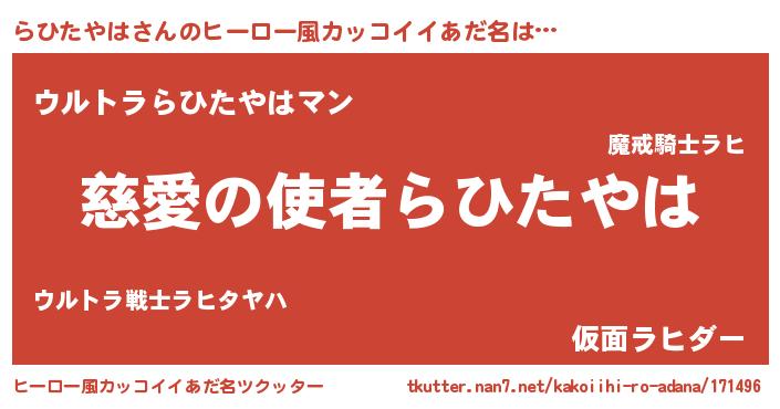 | 男性向けラノベタイトル風あだ名 | 『うちのらひたやはが世界を掌握している!』 |
