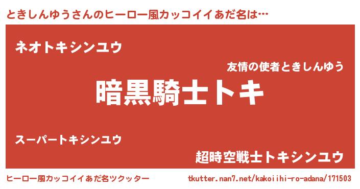 | 胡散臭い通販商品みたいなあだ名 | 『信頼と実績のサプリメント…その名も「ときしんゆう」』 |