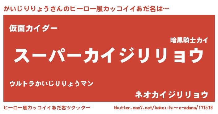 | 男性向けラノベタイトル風あだ名 | 『カイジリリョウスレイヤー』 |
