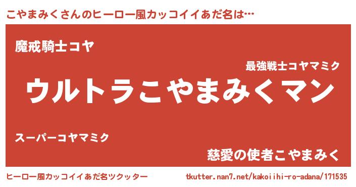 | 男性向けラノベタイトル風あだ名 | 『やはりこやまみくの青春ラブコメはまちがっている 』 |