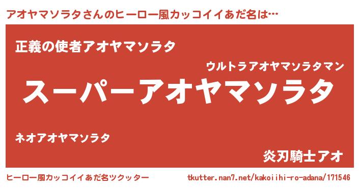 | 伝説のあだ名 | 『伝説の傭兵アオヤマソラタ』 |