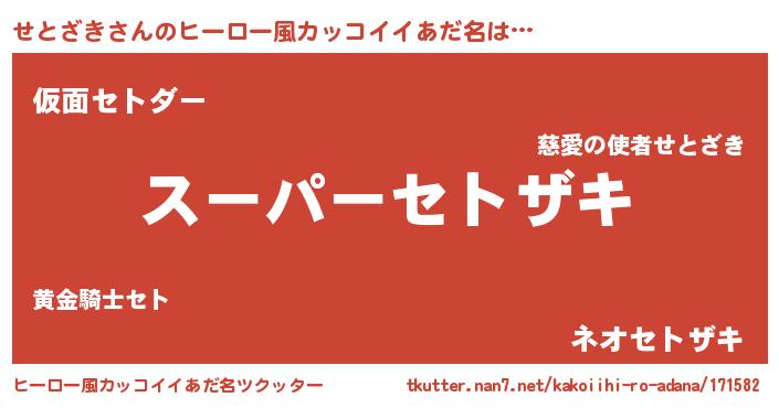 | 意味不明あだ名 | 『ペロリンせとざき』『永久保存せとざき』 |