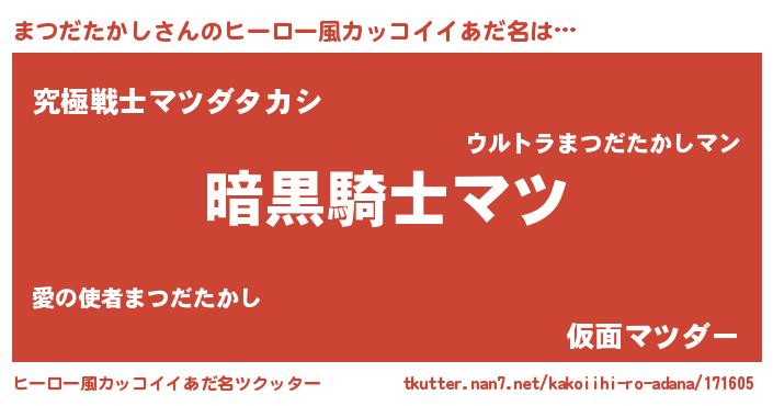 | ポケモン風あだ名 | 『マツキング』『ヒマツダタカシ』 |