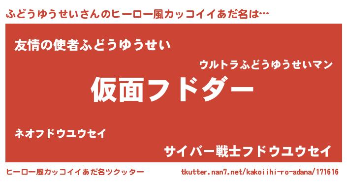 | 男性向けラノベタイトル風あだ名 | 『この素晴らしい世界にふどうゆうせいを!』 |