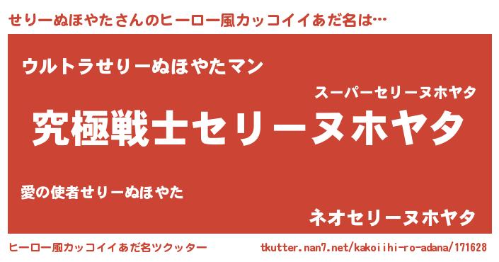 | 意味不明あだ名 | 『自称せりーぬほやた』 |