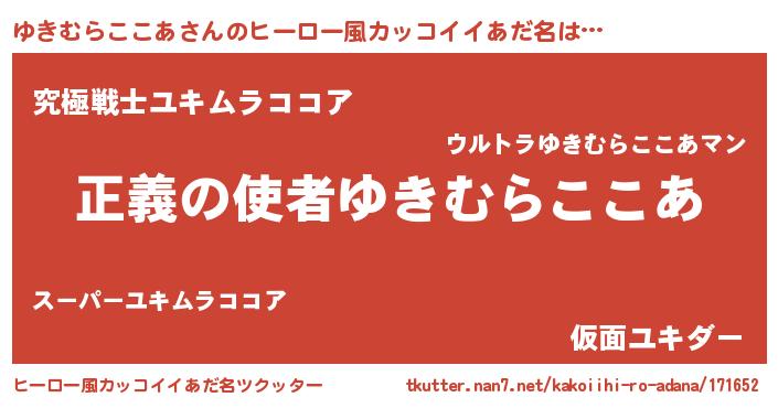 | 男性向けラノベタイトル風あだ名 | 『おまえをオタクにしてやるから、俺をゆきむらここあにしてくれ! 』 |