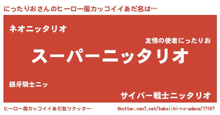 | 胡散臭い通販商品みたいなあだ名 | 『必ず成功する霊験あらたかなお札…その名も「にったりお」』 |