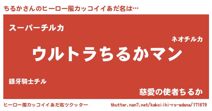 ちるかさんのヒーロー風カッコイイあだ名をツクッター!