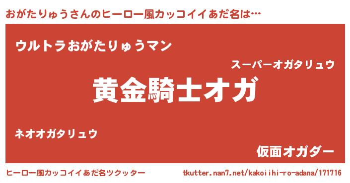 | 男性向けラノベタイトル風あだ名 | 『はたらくおがたりゅうさま!』 |