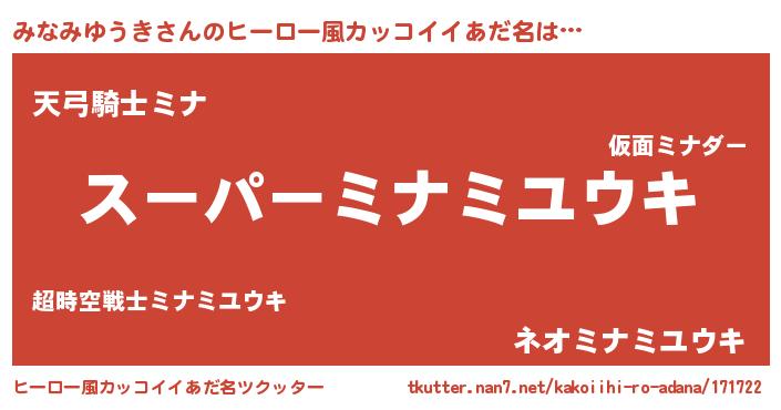 | ポケモン風あだ名 | 『ミナチュウ』『ヒミナミユウキ』 |