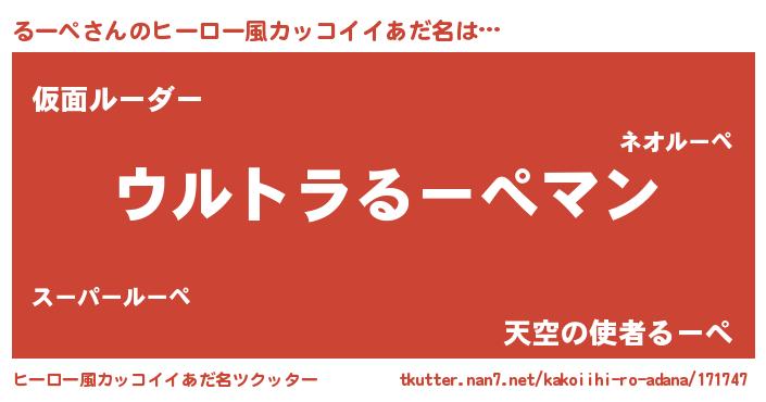 | 男性向けラノベタイトル風あだ名 | 『転生したらるーぺだった件』 |