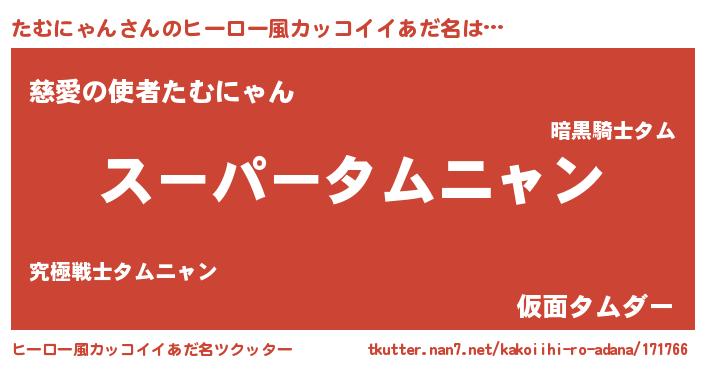 | 男性向けラノベタイトル風あだ名 | 『たむにゃんの憂鬱』 |