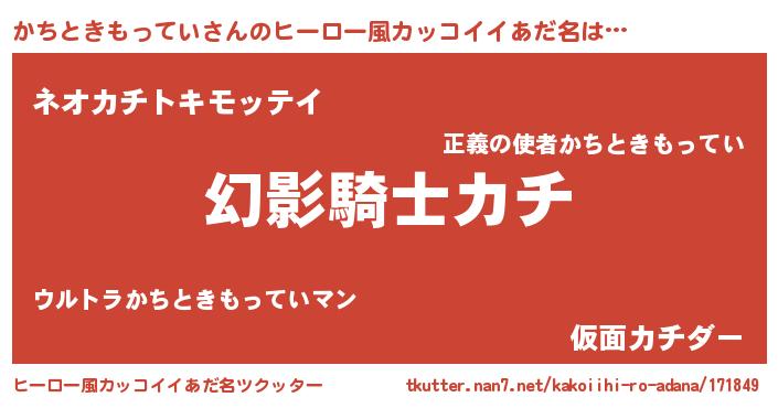 | 意味不明あだ名 | 『とにかく怪しいかちときもってい』 |