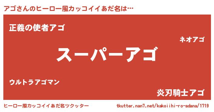 | ピコ太郎風あだ名 | 『アコ四郎』『アア太郎』『アゴ六郎』 |