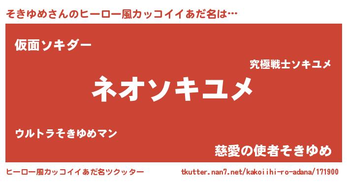 そきゆめさんのヒーロー風カッコイイあだ名をツクッター!