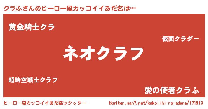 | ヘコむあだ名 | 『クラふ(小並感)』『クラっぺ』 |