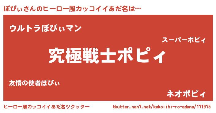 | 男性向けラノベタイトル風あだ名 | 『Re:ぽぴぃから始める異世界生活』 |