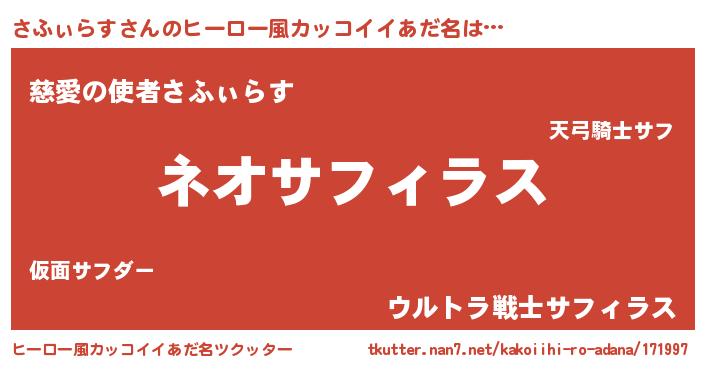 | 意味不明あだ名 | 『永久保存さふぃらす』『自称さふぃらす』 |