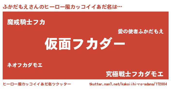 | ポケモン風あだ名 | 『フーカイ』『ヒフカダモエ』 |