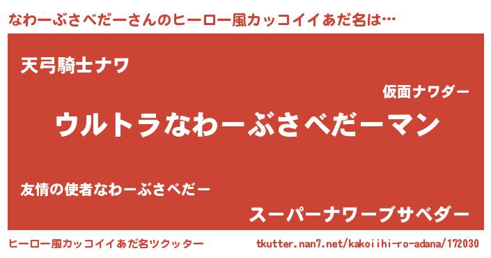 | ファンタジー風あだ名 | 『エターナルナワーブサベダーー』 |